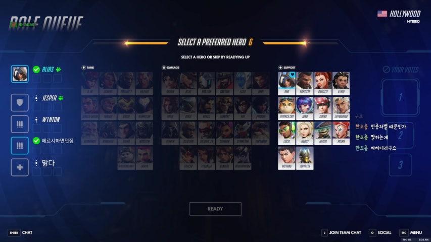 그러면 적군의 픽은 어떨까요? 적군은 한자리에 오래 있는 캐릭터가 많을 수록 좋습니다.
